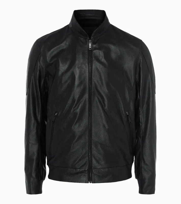 A must-have for dynamic elegance: this cabrio leather jacket made of water-repellent, soft nappa lambskin combines sophisticated design with convenient details, making it the perfect companion for a modern lifestyle. The removable collar with magnetic closure provides flexibility and ensures an individual look. Equipped with a zip and concealed hip pockets with branded zip pullers, the jacket offers functionality in a clean design. The Black back lining, together with the exclusive Porsche Design jacquard lining on the front inside, ensures both comfort and style. Two additional zip pockets and a convenient key pocket inside on the left provide secure storage on the go. The elegant Porsche Design logo embossed on the collar completes the striking look of this versatile jacket.