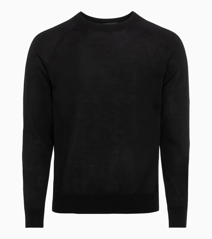 A stylish crew neck pullover for cooler days made of very soft material in a comfortable fit. With fully fashioned knitting, the ribbed sleeves and hem emphasise the pullover's stylish design. The hand-sewn Porsche Design icon on the left hem is a special detail and makes the pullover a must-have for all Porsche fans.