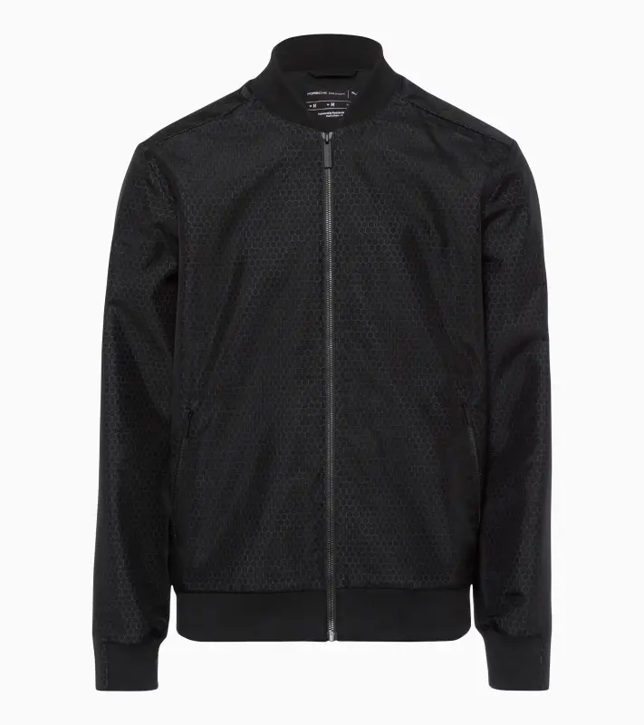 Bunda, která dělá rozdíl. Blousonová bunda kombinuje stylový design s maximální funkčností. Hlavní část vyrobená z recyklovaného polyesteru a průhledná síťovaná vrstva z recyklovaného nylonu zaručují udržitelnou kvalitu. S reflexním šestiúhelníkovým potiskem každé vlákno bundy ztělesňuje DNA Porsche. Dvě boční kapsy a vnitřní kapsa na neviditelný zip nabízí praktický úložný prostor pro všechny vaše cennosti. Žebrovaný úplet na rukávech, lemu a límci poskytuje dodatečné pohodlí. Značkový zip doplňuje detailní design.